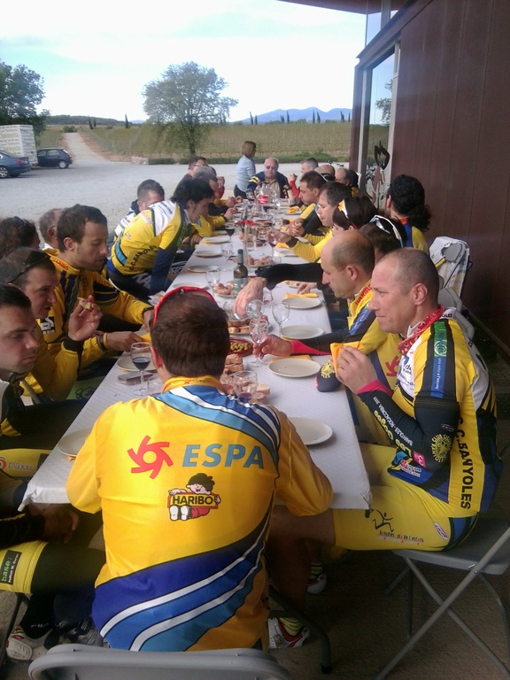 A meitat de recorregut ens hem aturat al celler La Vinyeta de Mollet de Peralada per esmorzar. La veritat és que ens ha costat molt car pel servei que ens han donat. Haurem de buscar un altre lloc per una altra edició.