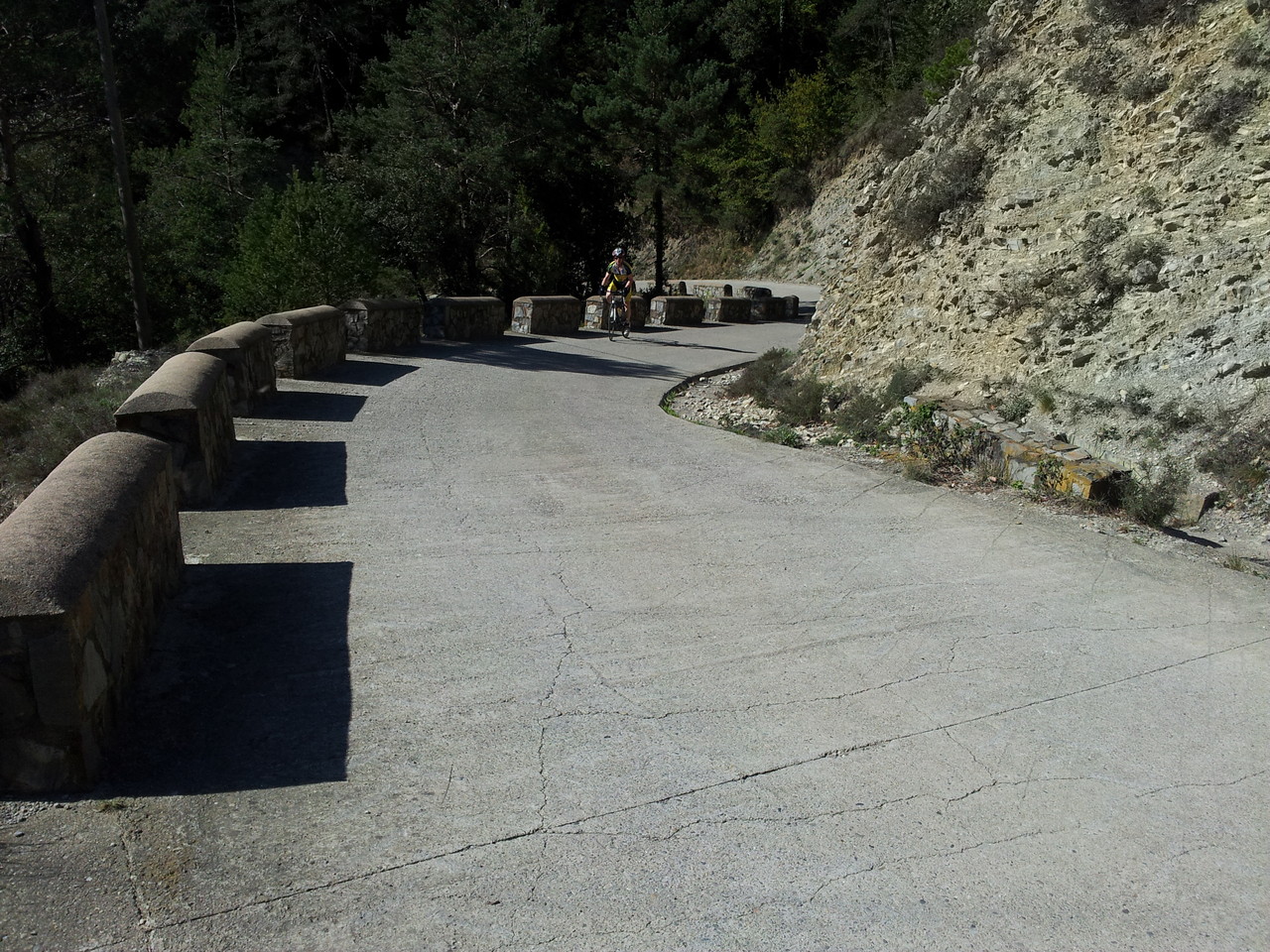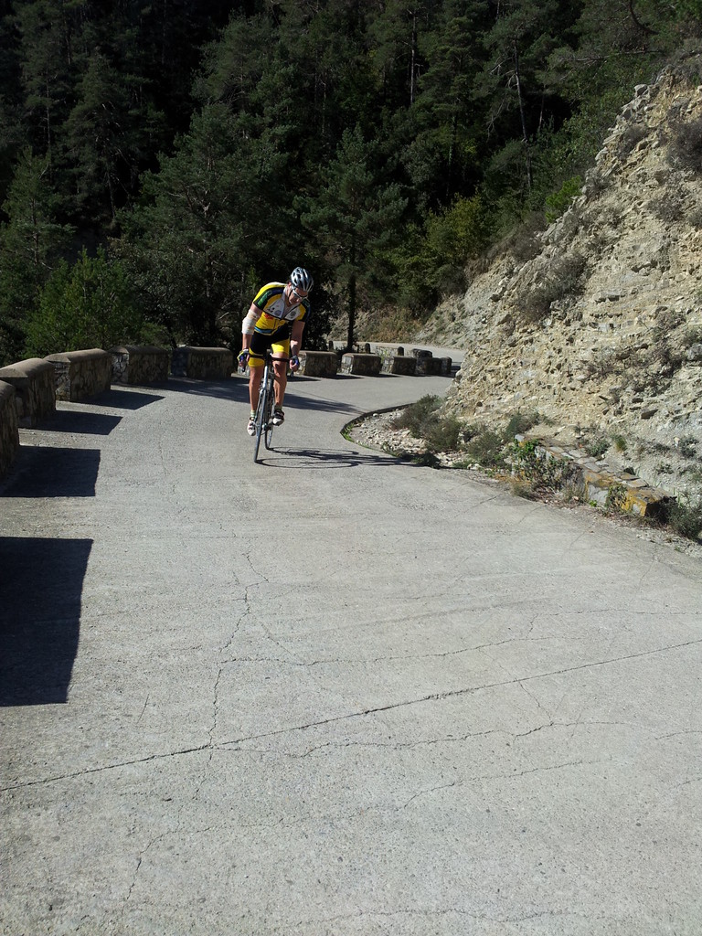 Una vintena de socis han participat en la sortida d'aquest diumenge a Banyuls i St Pere de Rodes. A les 8h tocades començàvem a pedalar a la població de Peralada amb el temps una mica fresc però ben assolellat. A partir d'Espolla i sobretot pujant el coll de Banyuls la tramuntana ha bufat molt fort, amb ràfagues que feien difícil aguantar l'equilibri sobre la bici. Un cop al poble de Banyuls de la Marenda ha deixat de bufar i hem pogut pujar el coll de Belitres i el del Frare tranquil·lament. Per acabar tocava el plat fort del dia: l'ascenció al coll de Sant Pere de Rodes per Port de la Selva. Finalment, hem arribat a Peralada completant 96 km de recorregut.