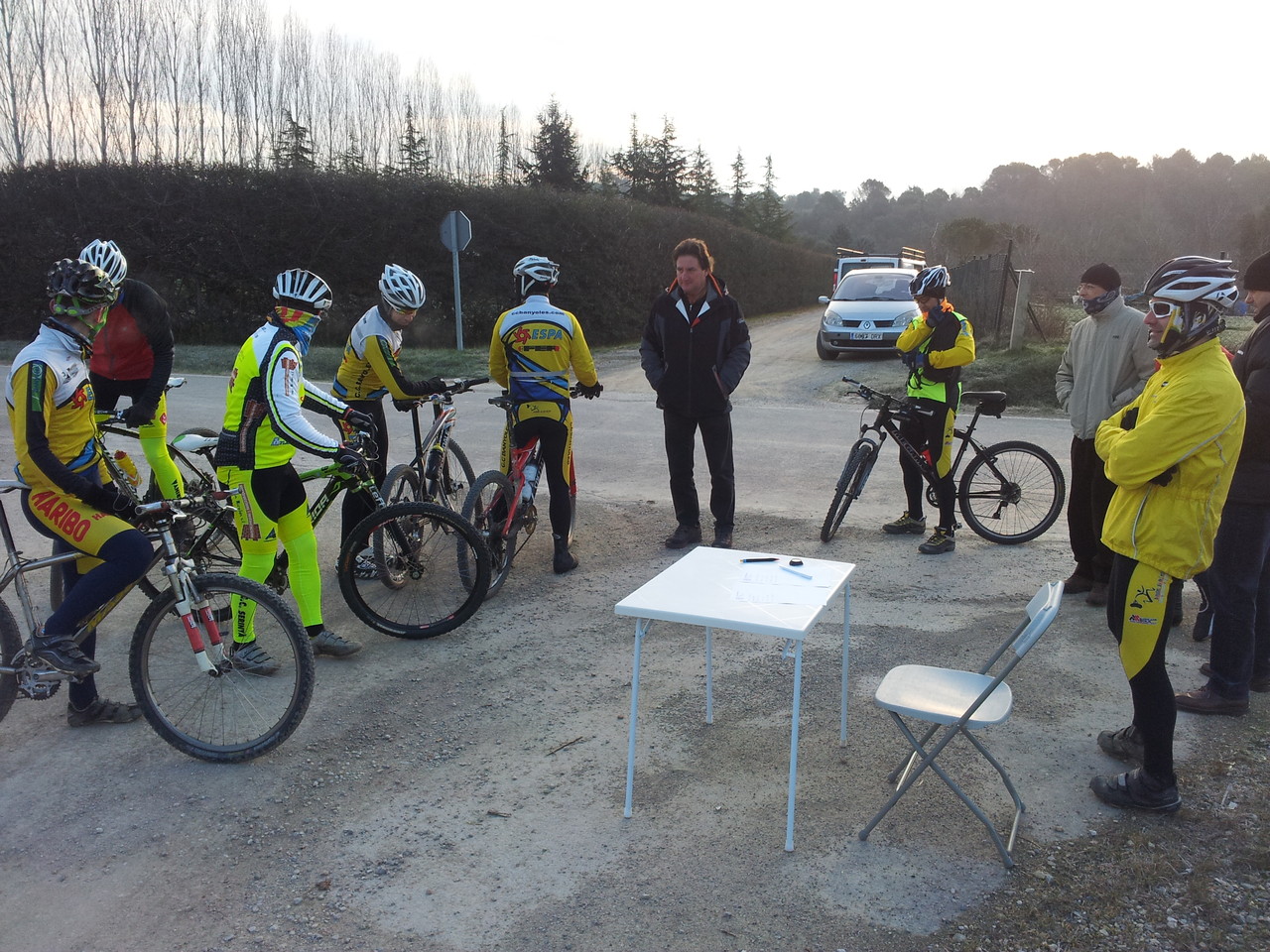 Matinal molt freda al Pla de l'Estany! A 2/4 de 9 els socis que han fet la cronoescalada sortien per fer-se passar el fred i disputar els 8km dels que constava la prova.